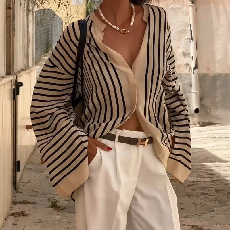 Košile Proužkovaná Elegantního Stylu Volný Střih