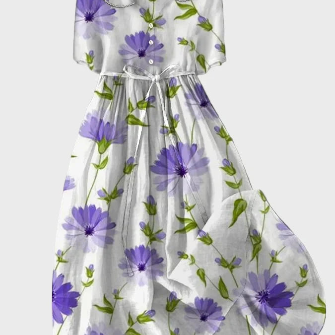 Florální Maxi Šaty Elegantní Aline Střih Prodyšné Pohodlné