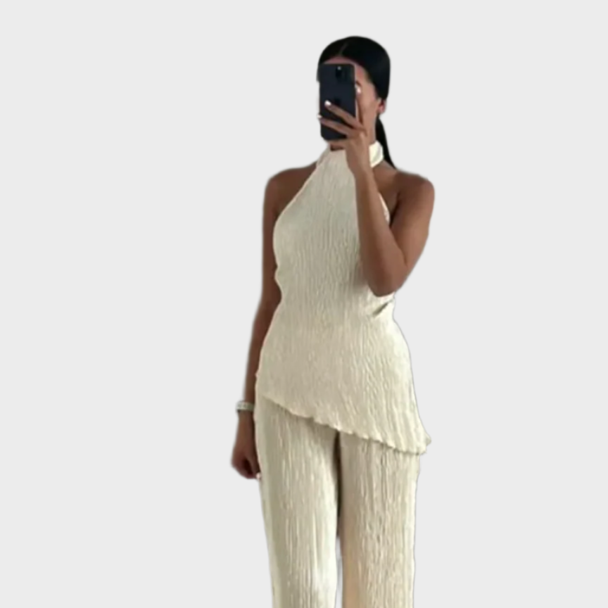 Elegantní Plisovaný Set Krémové Barvy Večerní Příležitosti