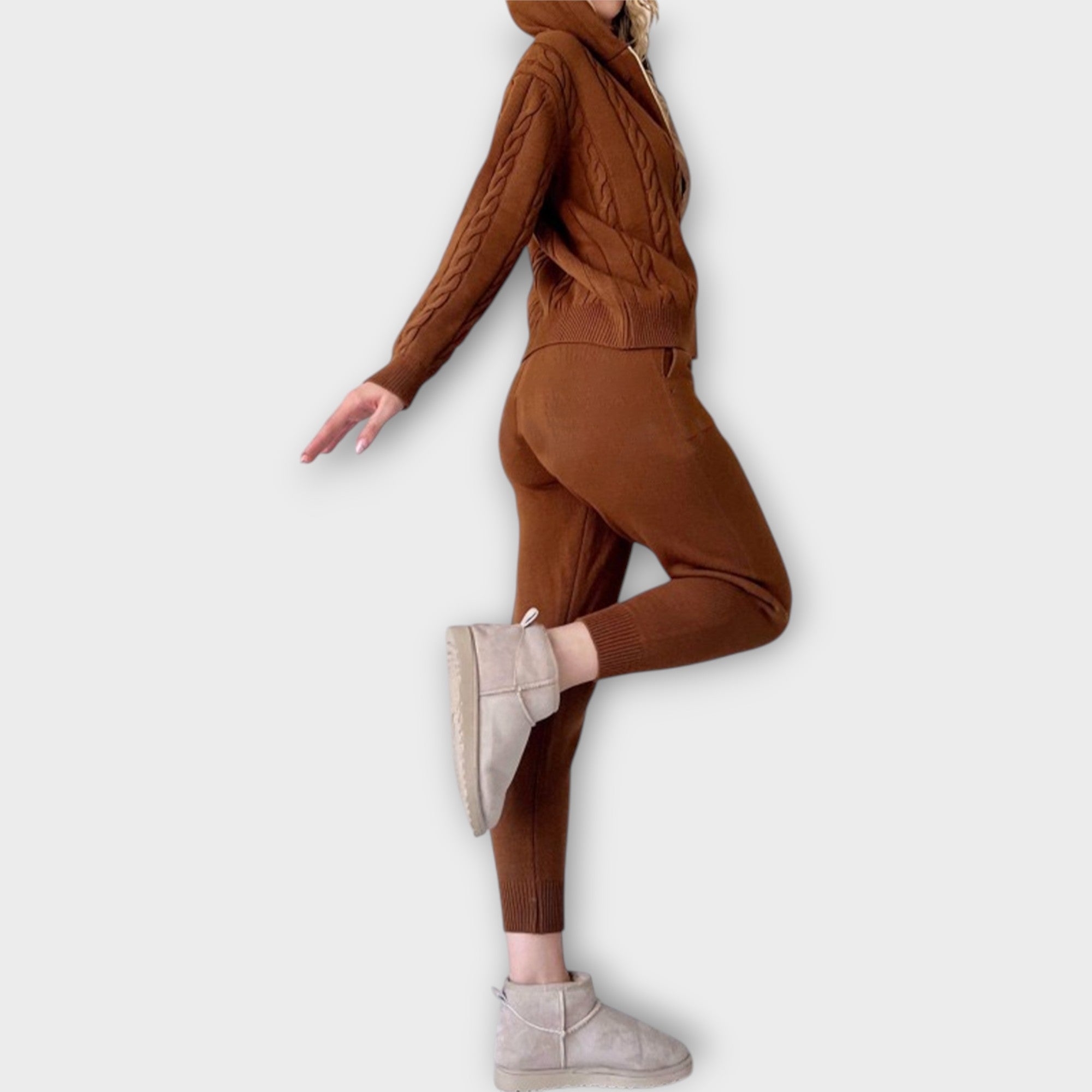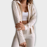 Objevte náš pletený set s kapucí a kardigánem – dokonalé spojení stylu a pohodlí pro každý den. Tento elegantní set se hodí jak pro volný čas, tak pro více upravené příležitosti a díky svému univerzálnímu designu skvěle padne téměř ke každému stylu.