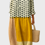 Zažijte atmosféru léta s šaty Přírodní krása — lehký, umělecky působící kousek, který tančí ve větru a dodá vám svobodu, krásu a pohodlí na každém kroku. Lehký materiál a volná, plynulá silueta vám umožní cítit se lehce i sebejistě po celý den i večer.