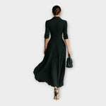 Dlouhé šaty s vytříbenou elegancí a nadčasovým šarmem, které se hodí pro každodenní i zvláštní příležitosti. Rafinovaný střih jemně obepíná siluetu, zatímco lehká plisá textura dodává šatům jemný, vzdušný pohyb.