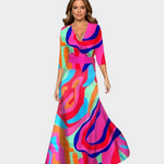Objevte jemnou eleganci těchto midi šatů s vysokým pasem a volně padnoucím střihem , které spojují sofistikovanost s pohodlím. Vzor květin v akvarelovém stylu podtrhuje romantický vzhled a dodává outfitu umělecký nádech.