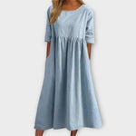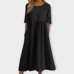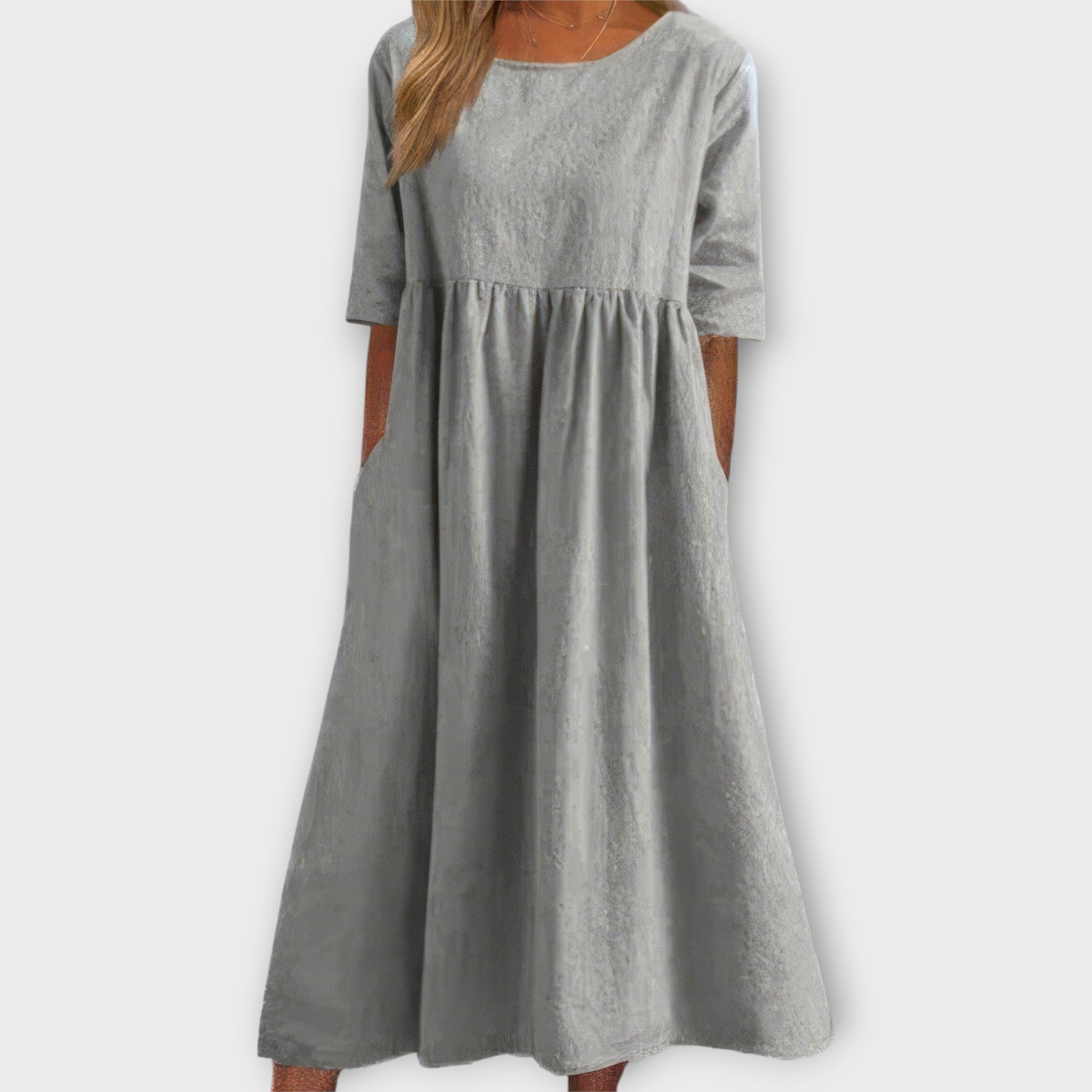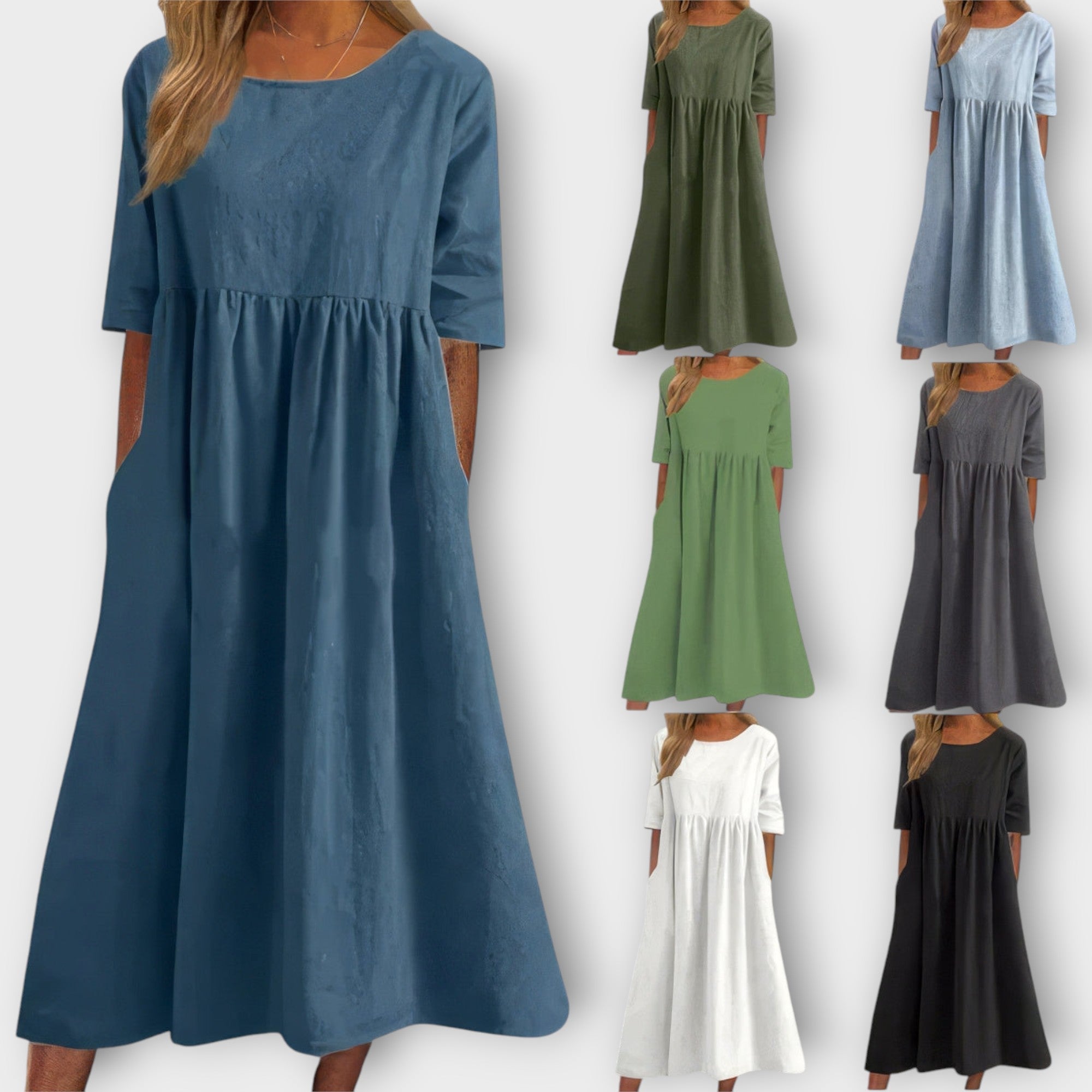 Objevte dlouhé šaty s volným střihem a nadčasovou elegancí, které se snadno přizpůsobí vašemu stylu a každé příležitosti. Tento kousek spojuje pohodlí, praktičnost a jemný minimalistický charakter, který podtrhne vaši osobnost a dodá sebevědomí v každém okamžiku.