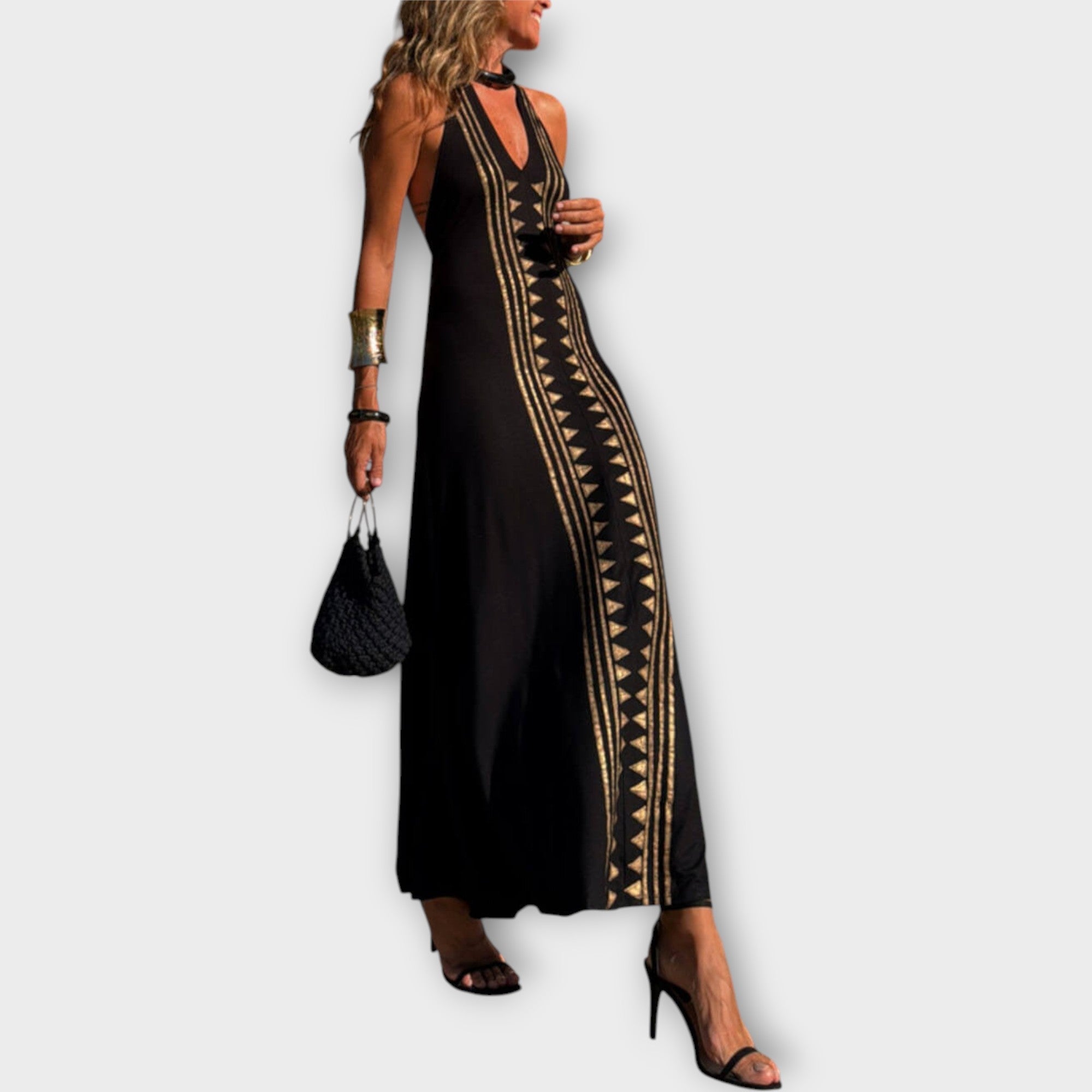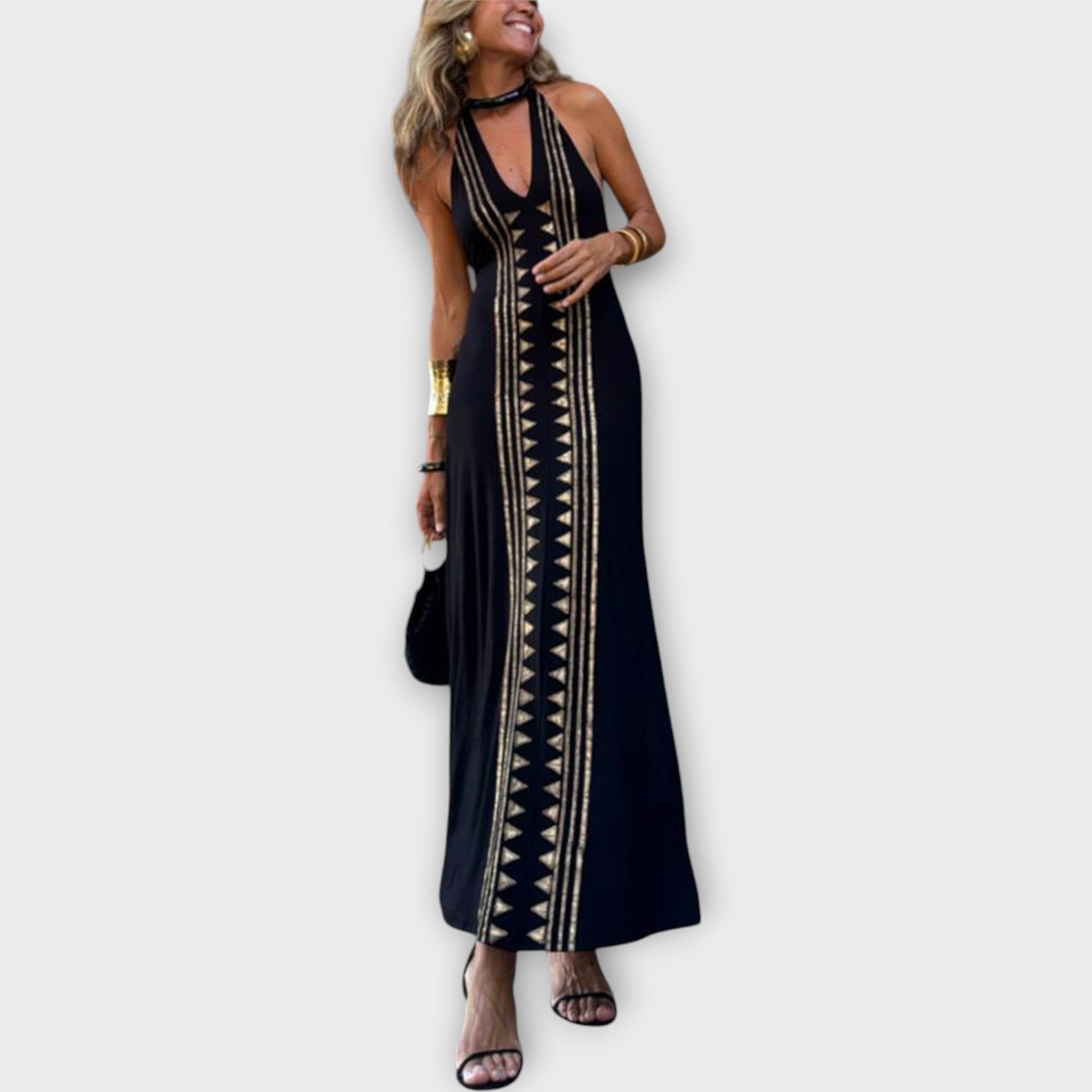 Maxi Šaty S Lineárními Výšivkami A Elegantním Výstřihem