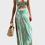 Přidejte do své letní garderóby svěží dotek s tímto pohodlným šatem s výkroji v jemné matové barvě. Moderní řešení s odvážnými výkroji dodává šarm a zároveň zachovává komfort, ideální pro dovolenou, pláž i večerní vycházky s kamarády. Lehký a prodyšný materiál zajistí osvěžující nošení v horkých dnech.
