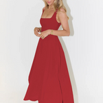 Elegantní Midi Šaty S Romantickým Střihem Čtvercový Dekolt
