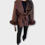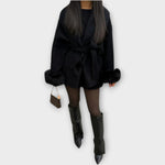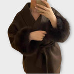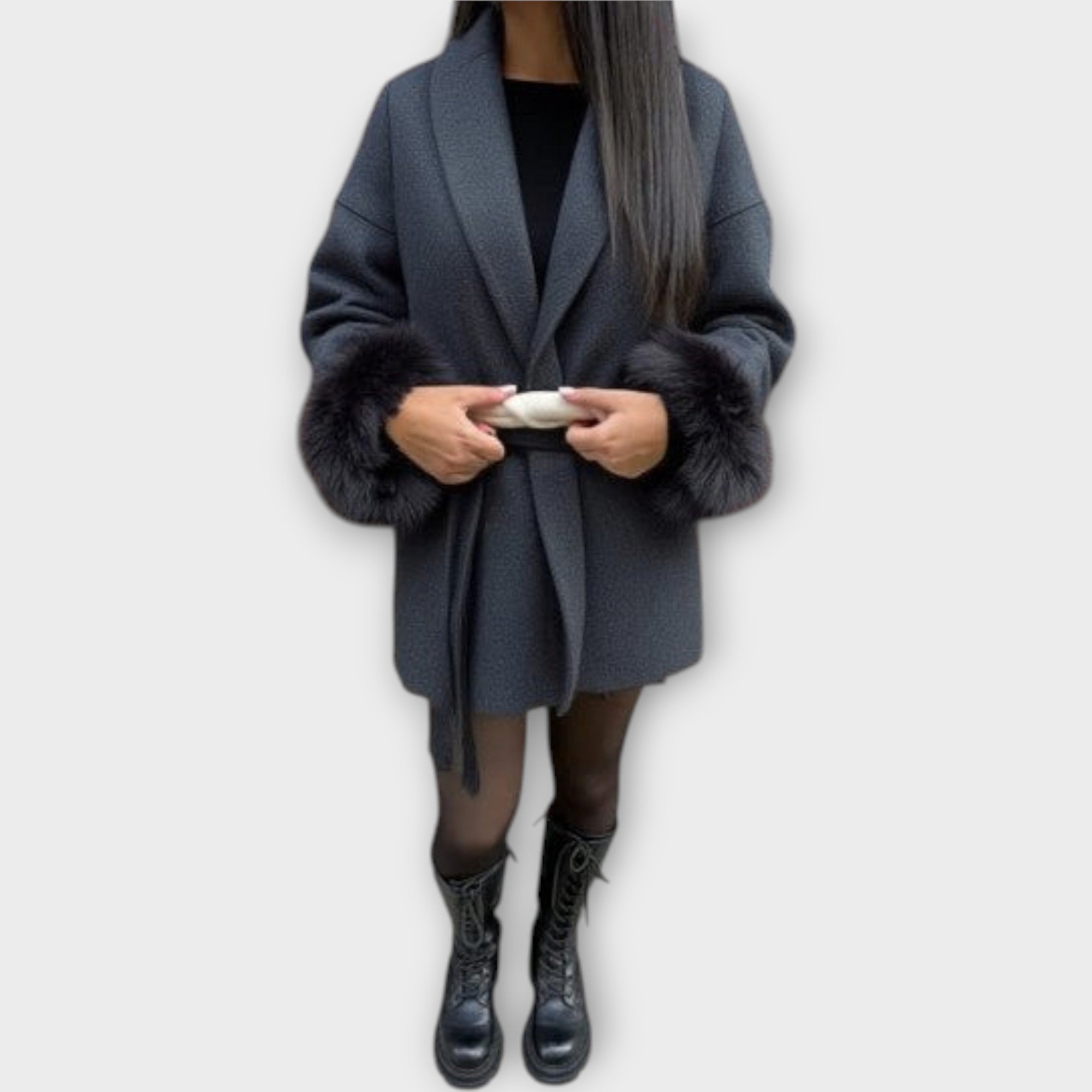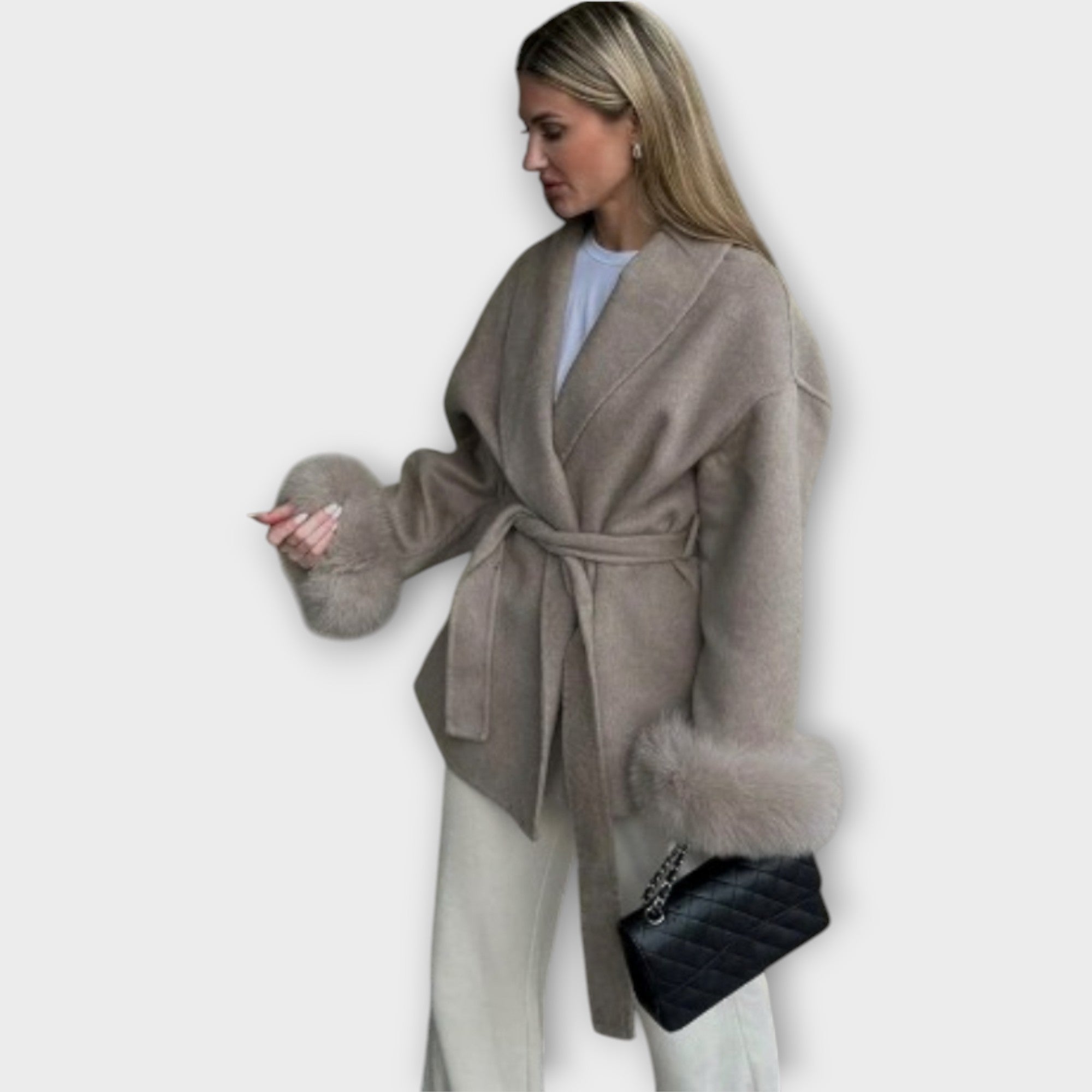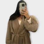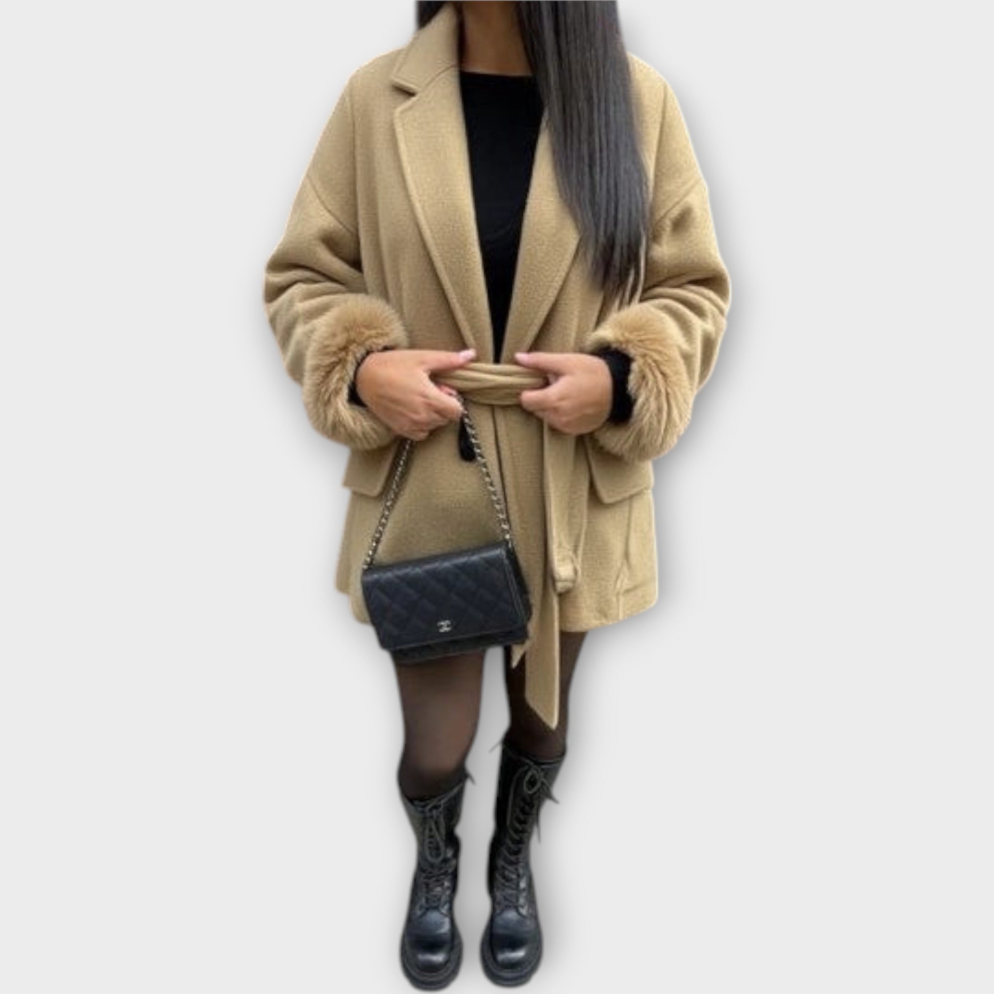 Elegantní kabát s páskem a detaily na manžetách, které povyší každý outfit. Pás v pase umožňuje dokonalé přizpůsobení a vytváří lichotivou siluetu, detaily na manžetách dodávají kabátu nádech luxusu. Jeho všestranný charakter se hodí pro všechny příležitosti — od casual dní po elegantní večery.