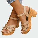 Dámské Stylové Sandály S Podpatkem A Pleteným Páskem Černé