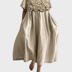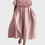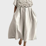 Midi Šaty Béžové S 3D Květinovými Ozdobami Plisovanými