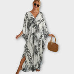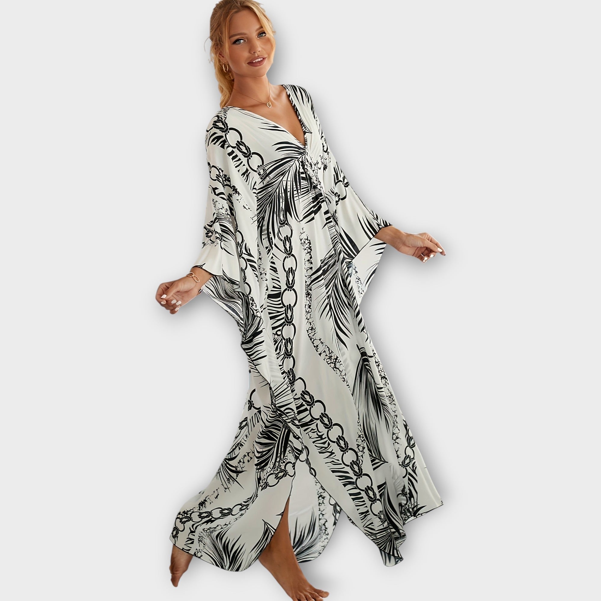 Elegantní maxi kaftan s romantickým tokem a uvolněnou estetikou je synonymem pohodlí a špičkové elegance pro každou příležitost. Tento kousek kombinuje jemný drap a svěží střih, který vynikne jak při volných denních momentech, tak při večerních akcích.