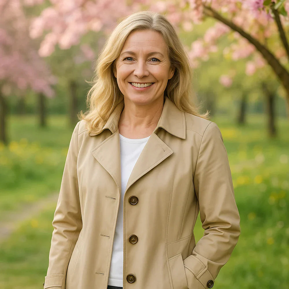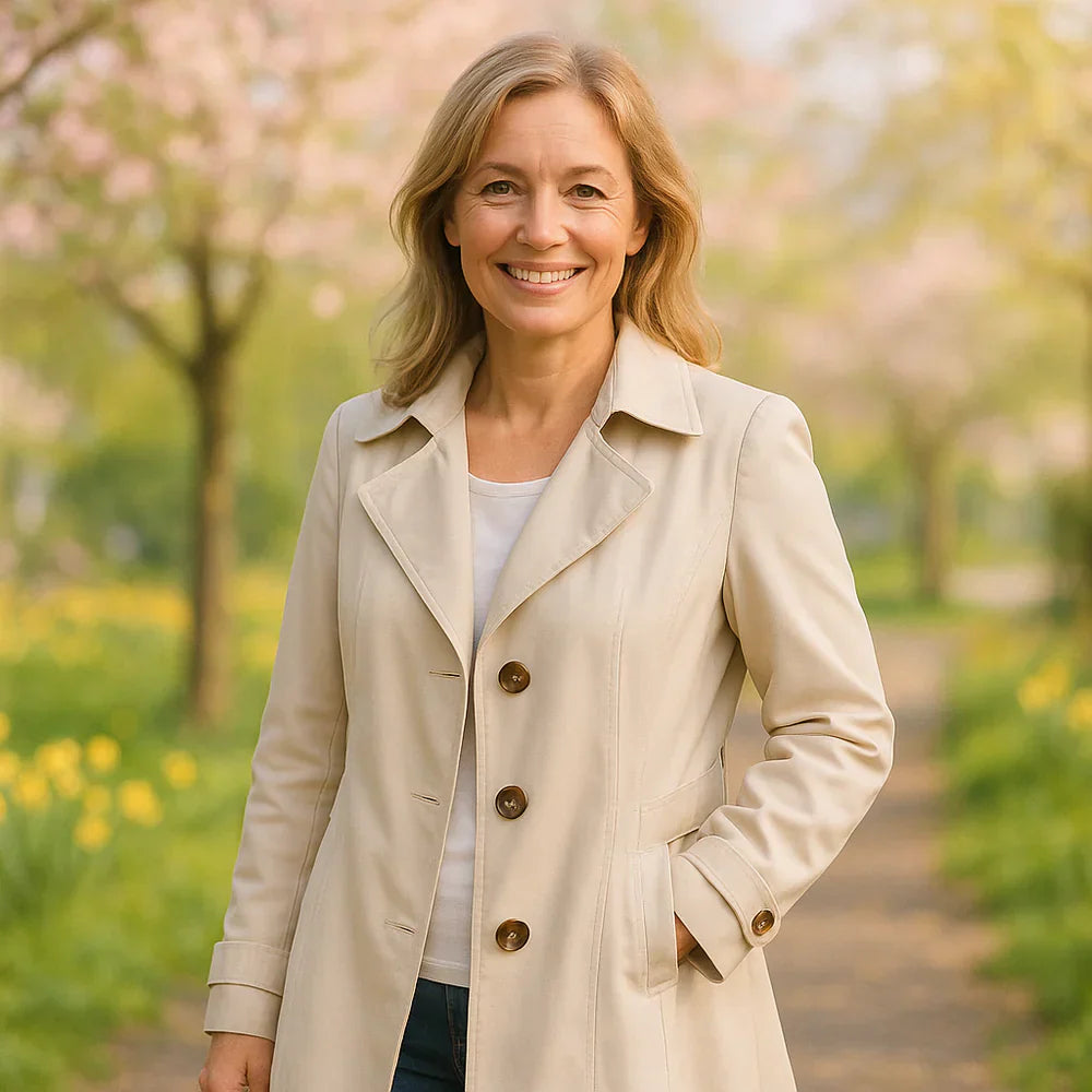 Cíťte sa elegantne a sebavedomo zakaždým, keď vyjdete z domu. Elisenda je dokonalý jarný kabát – ľahký a lichotivý, no zároveň praktický na nepredvídateľné každodenné počasie.