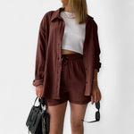 Dvoudílný Letní Set Topu a Šortek Lehký a Elegantní