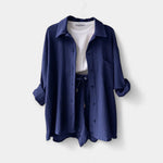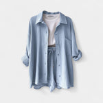 Objednejte si tento pohodlný a stylový letní set a dopřejte si bezstarostný den plný chladu a elegance — ideální volba pro městské i venkovní léto.