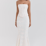Έεβι | Šaty s vyšívaným korzetem představují jemně elegantní a ženský kousek, který dokonale tvaruje siluetu a dodává neodolatelnou eleganci. Přiléhavý střih křivky a krajkové detaily dodávají romantiku a luxus.