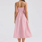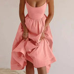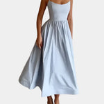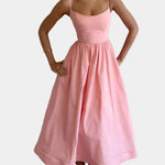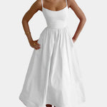 Šaty s volnou a jemně saténovou linií spojují romantiku s jednoduchostí. Díky dokonale tvarovanému pasu a lehkému A-line sukni působí elegantně a pohodlně zároveň. Tenké ramínka a kulatý výstřih vytváří lehký letní look, který je ideální pro letní vycházky, romantické večeře i každodenní styl.