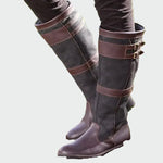 Retro dámské kožené jezdecké boty v kombinaci hnědé a tmavě šedé ztělesňují nadčasovou eleganci a praktičnost. Vysoký střih podtrhuje siluetu a poskytuje jistý komfort po celý den, ať už vyrážíte na procházku městem nebo na lehký výšlap do přírody.