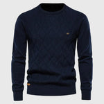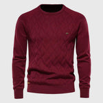 Zažijte nejvyšší komfort nošení s Huberd | Pánský svetr s kostkovaným vzorem. Vyroben z ultra-měkké bavlny s přesně správnou elasticitou, nabízí tento svetr dokonalé padnutí a stylový, nadčasový vzhled. Ať už na každodenní nošení nebo na speciální příležitosti – tento svetr spojuje styl a pohodlí na nejvyšší úrovni.