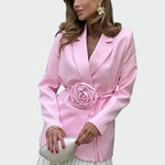 Vystupte z davu s sakem Blanka, které ztělesňuje ženskost, eleganci a moderní styl. Jemný růžový odstín v kombinaci s originálním páskem ve tvaru květu vytváří harmonický celek, který působí romanticky a sofistikovaně zároveň.