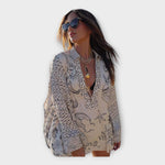 Tento kaftán je ideální volbou pro letní dny, dovolené i každodenní styling – jednoduše jej zkombinujete se sandály, espadrilkami nebo stylovým kotníkovým botám a vytvoříte si vzhled od casual po více sofistikovaný bez námahy.
