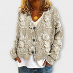 Seznamte se se Stellou – květinový vzorovaný pletený kardigan, který spojuje nadčasovou romantiku s každodenní elegancí. Tento cardigan se nosí jednoduše přes vaše oblíbené kousky a dodá vašemu outfitu jemný, ženský šarm. Ideální pro vrstvení a pohodové dny.