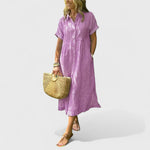 Šaty Angela vynikají svou delší délkou a nadčasovým střihem, který krásně zvýrazní pas a plynule splývá kolem těla. Vyrobené z měkkého, prodyšného materiálu, jsou ideální pro horké letní dny, romantické večery i slavnostní chvíle ve městě.