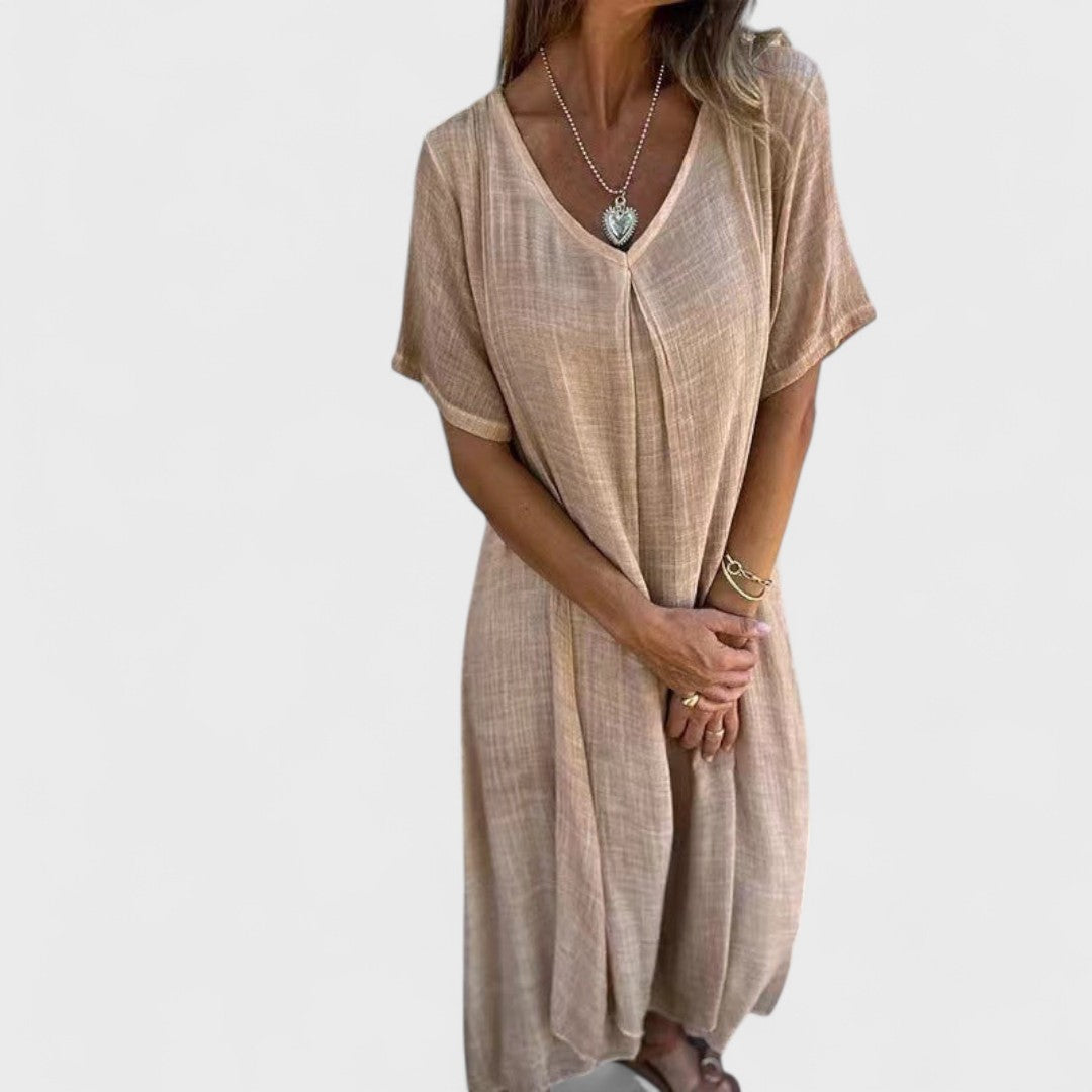 Šaty Ester přinášejí jemný mix elegance a pohodlí díky lichotivému výstřihu do V, který opticky prodlužuje krk, a lehkému materiálu, jenž příjemně padá kolem těla. Hodí se jak pro pracovní dny, tak pro večerní posezení s přáteli – poskytnou vám pocit sofistikovaného stylu bez zbytečné složitosti.