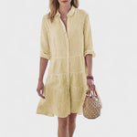 Šaty Lolita kombinují hravé pruhy s jemně splývajícím střihem, díky kterému se budete cítit svěže i během těch nejteplejších dnů. Volný střih zaručí pohodlí bez pocitu sevření, ať už jdete na procházku městem, brunch s kamarádkami nebo si užíváte relaxaci na zahrádce.