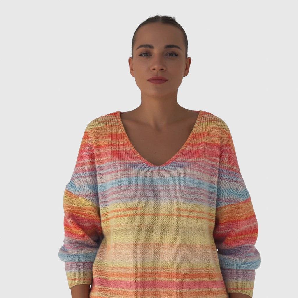Objevte komfort a nadčasový styl s tímto lehkým pleteným svetrem. Ideální pro každodenní nošení, nabízí pohodlnou siluetu, elegantní výstřih do V a decentní vzor, který se hodí ke každému outfitu. Nezbytný základ pro každý šatník. Vyrobeno z vysoce kvalitního materiálu, který zajišťuje měkkost, pružnost a lichotivý střih.