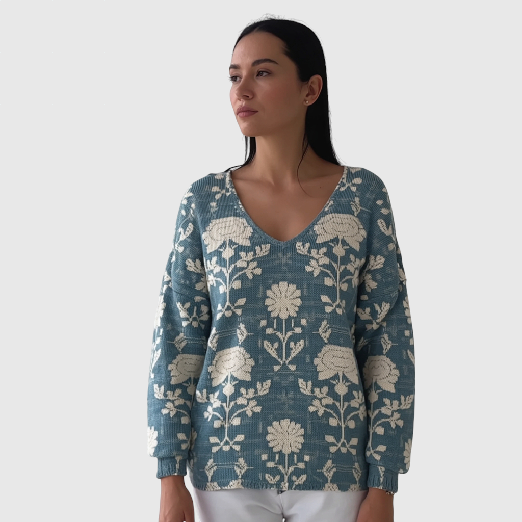 Svetr s V-výstřihem, měkký a pohodlný.