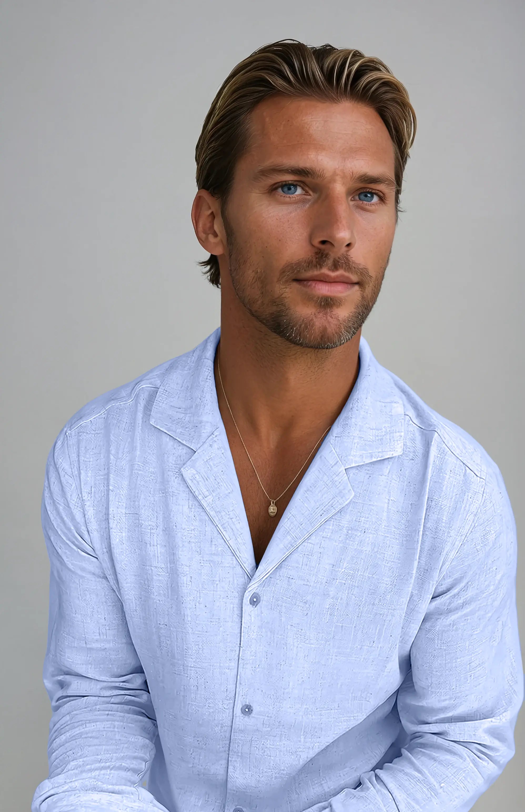 Objednejte si dnes svou Lněnou plážovou košili - Světle modrou u Grand Arbre a zažijte dokonalou rovnováhu mezi stylem a pohodlím!