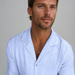 Tato košile je dokonalou kombinací bezstarostného stylu a maximálního pohodlí při nošení. Vyrobena z vysoce kvalitní lněné směsi, nabízí prodyšný a lehký střih, ideální pro horké dny a letní dobrodružství. Svěží světle modrá nuance dodává uvolněný, ale rafinovaný vzhled každému outfitu.