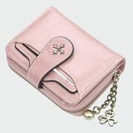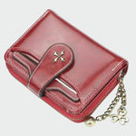 Moderní peněženka v černé barvě, s elegantním designem a praktickými detaily. Disponuje víkem s uzávěrem a kovovou dekorací, stejně jako zipem s řetízkem a okouzlujícím závěsným vzorem. Její kompaktní velikost ji činí ideální pro každodenní použití, zatímco nabízí dostatek prostoru pro karty, mince a bankovky.