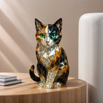 Tato soška elegantní kočky je ideálním doplňkem pro každého, kdo chce oživit svůj domov nebo kancelář. Je z pryskyřice a má vzhled drahokamu v kombinaci černé a zlaté barvy, což dodává luxusní a umělecký vzhled. Je vhodný pro použití v interiéru i exteriéru a vyžaduje zvláštní elektřinu, což z ní dělá praktický a všestranný doplněk pro každou poličku nebo stůl.