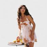 Šaty Dana vás zaujmou jemným pastelovým květinovým potiskem a splývavou šifónovou vrstvou, která jemně tančí do rytmu kroků. Lichotivý střih s halter výstřihem zdůrazní ramena a krásně podtrhne hrudník, zatímco vrstvená sukně dodá hravost a ženskost. Ideální volba na zahradní party, letní brunch nebo relax při víně na terase.