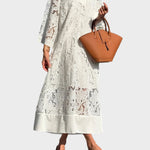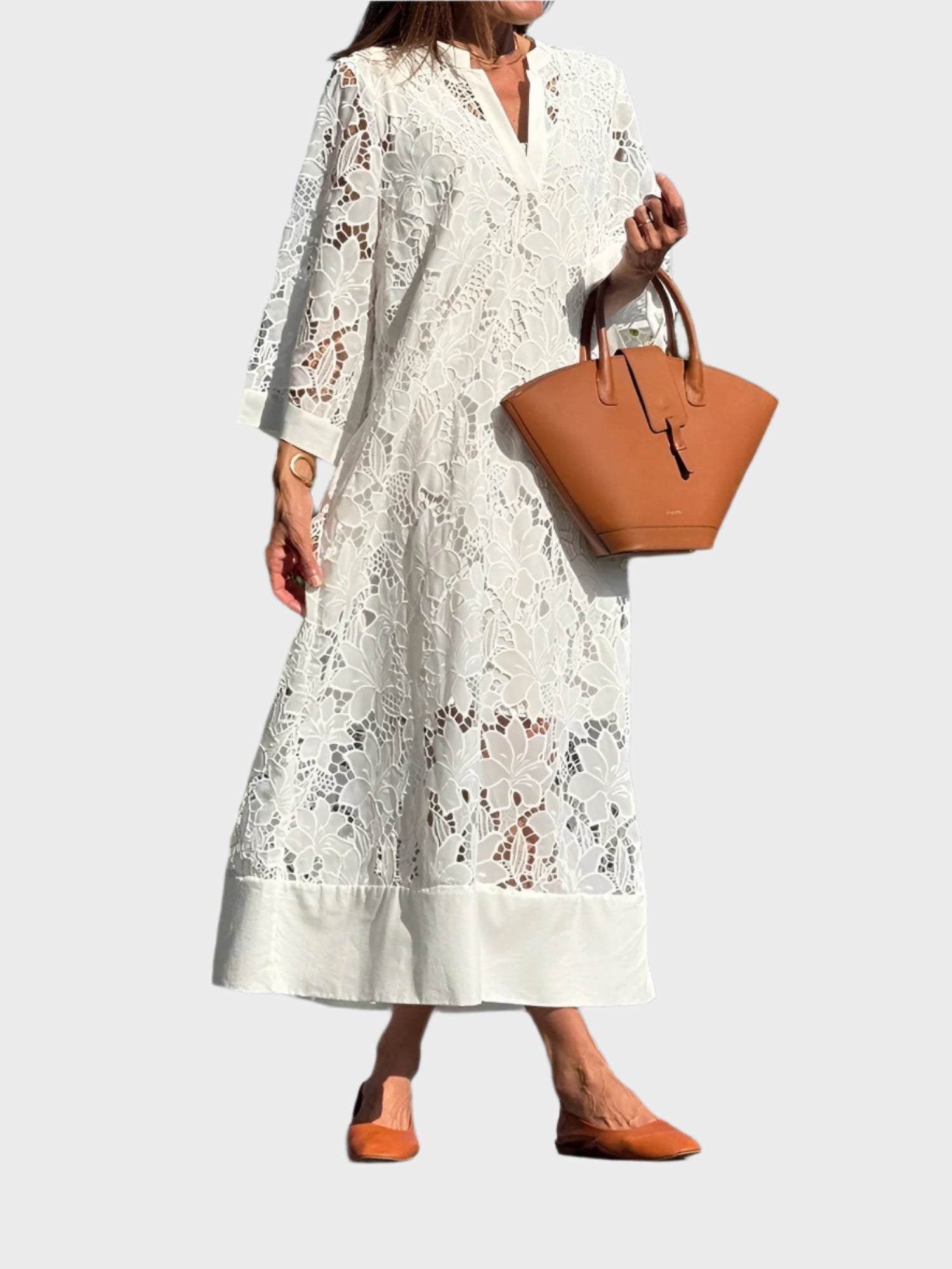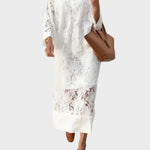 Objevte šarm bílých šatů z krajky s vyšívaným vzorem, které spojují lehkost a sofistikovanost. Lehký, vzdušný střih dodává pohodlí a nadčasový půvab, zatímco jemná krajka vytváří eleganci s důmyslnými květinovými motivy.
