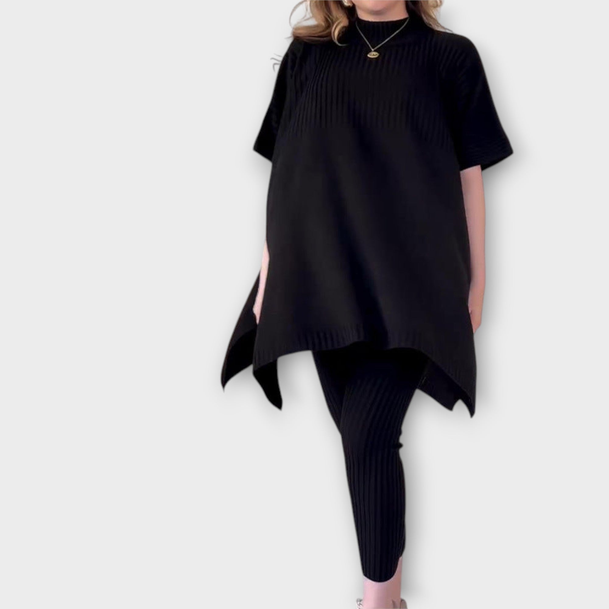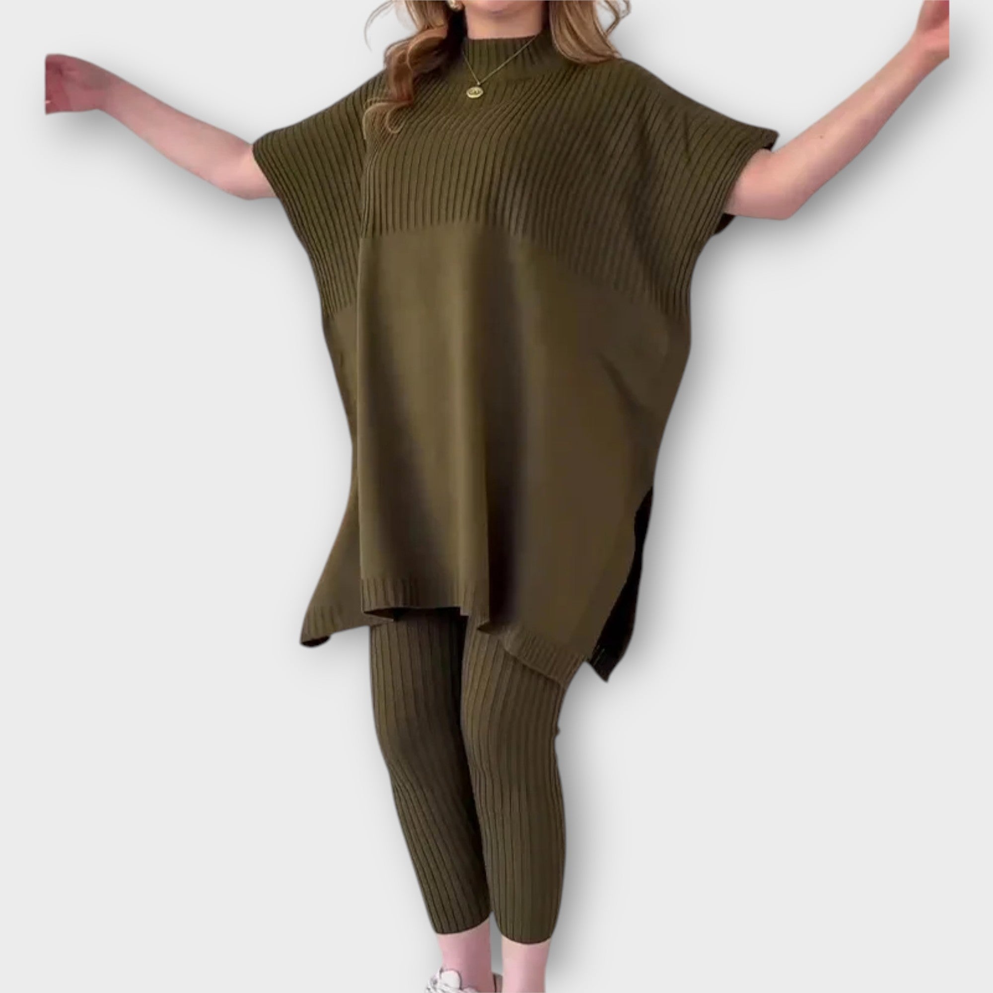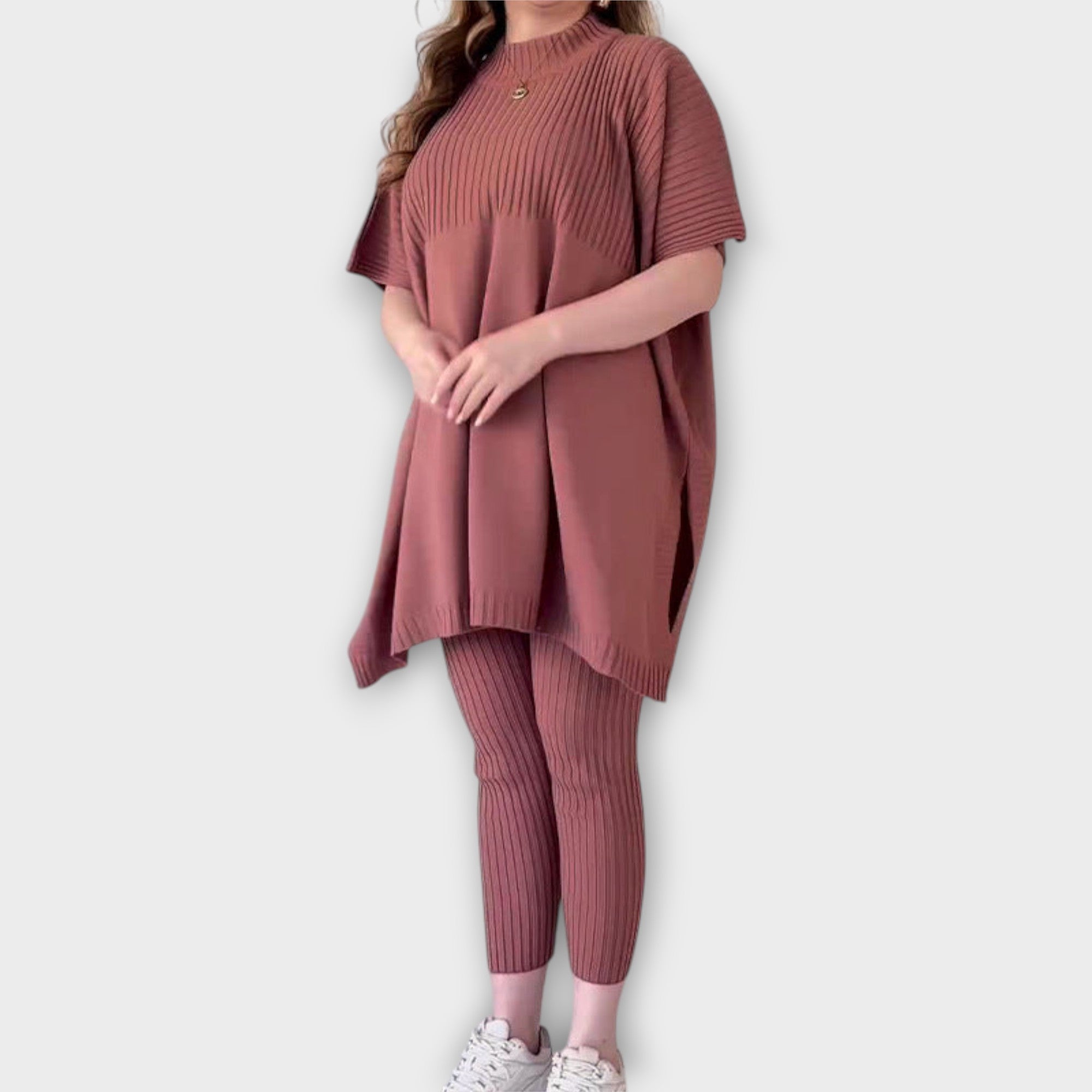 Elegantní pletený set s pohodlným střihem, který spojuje styl a praktičnost pro každou chvíli dne. Jemná, měkká textilie poskytuje pohodlí po celý den, pokud volný střih zajistí svobodu pohybu. Minimalistická estetika a nadčasový charakter dělají z této sady univerzální volby, která se hodí ke každému stylu — od casual po sofistikované outfity.