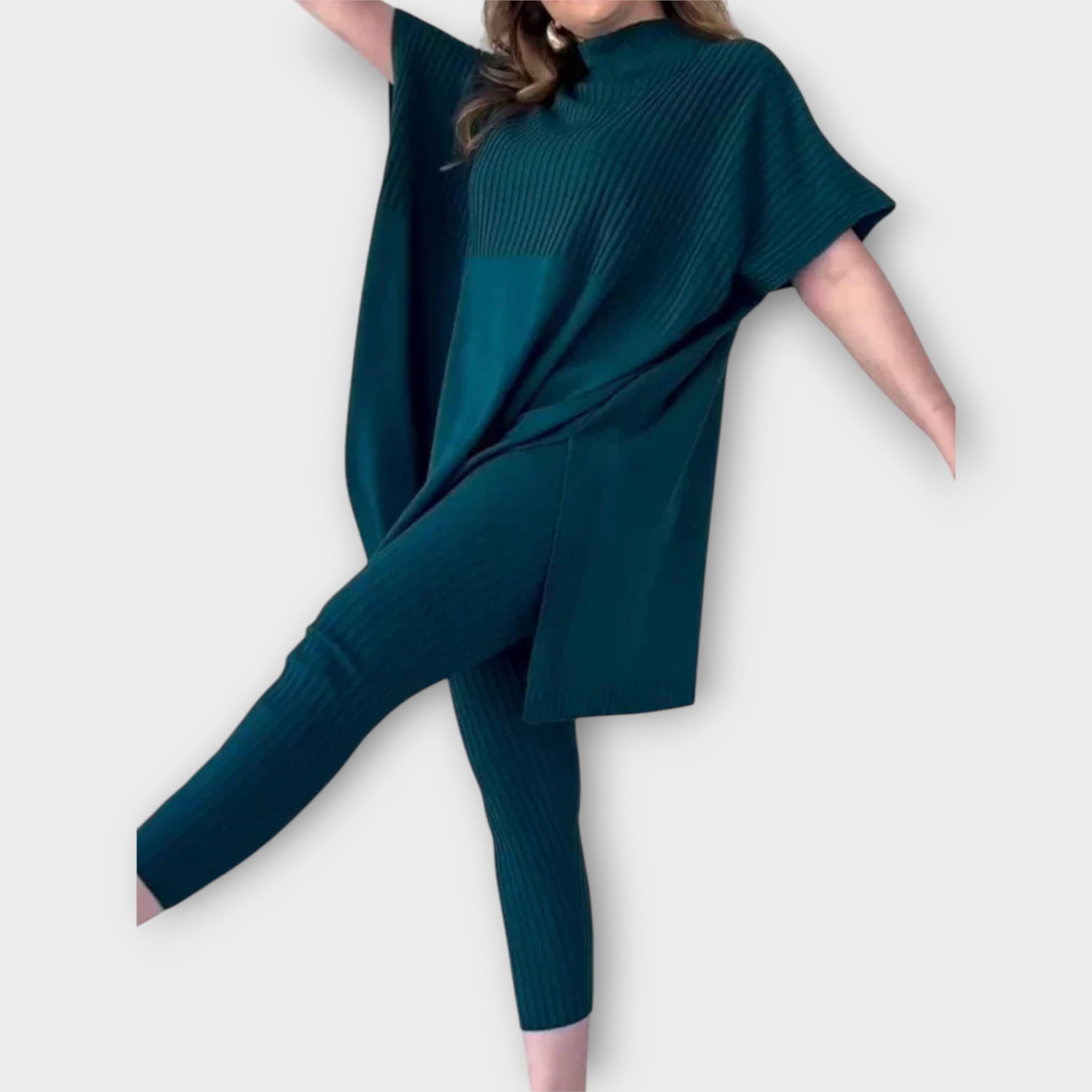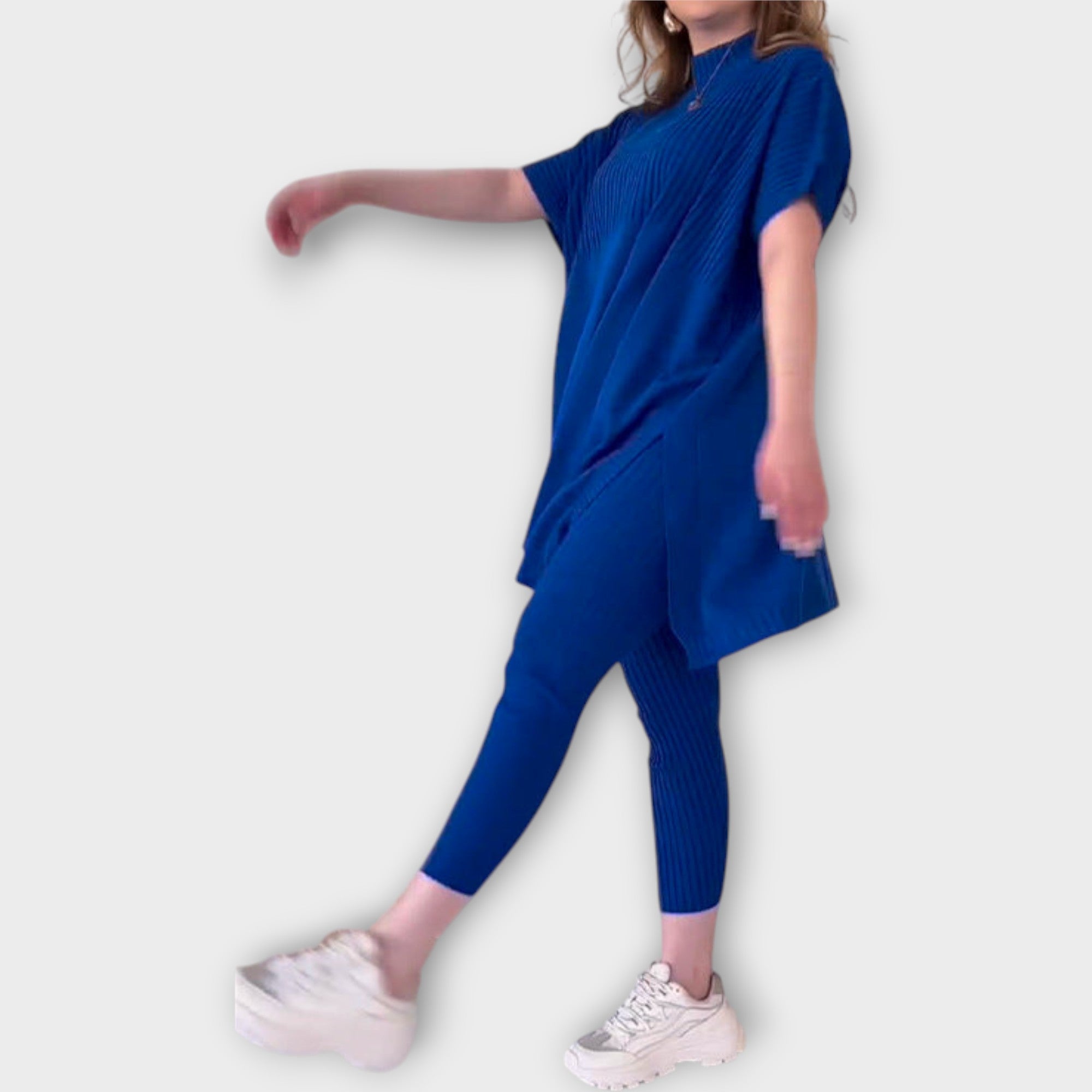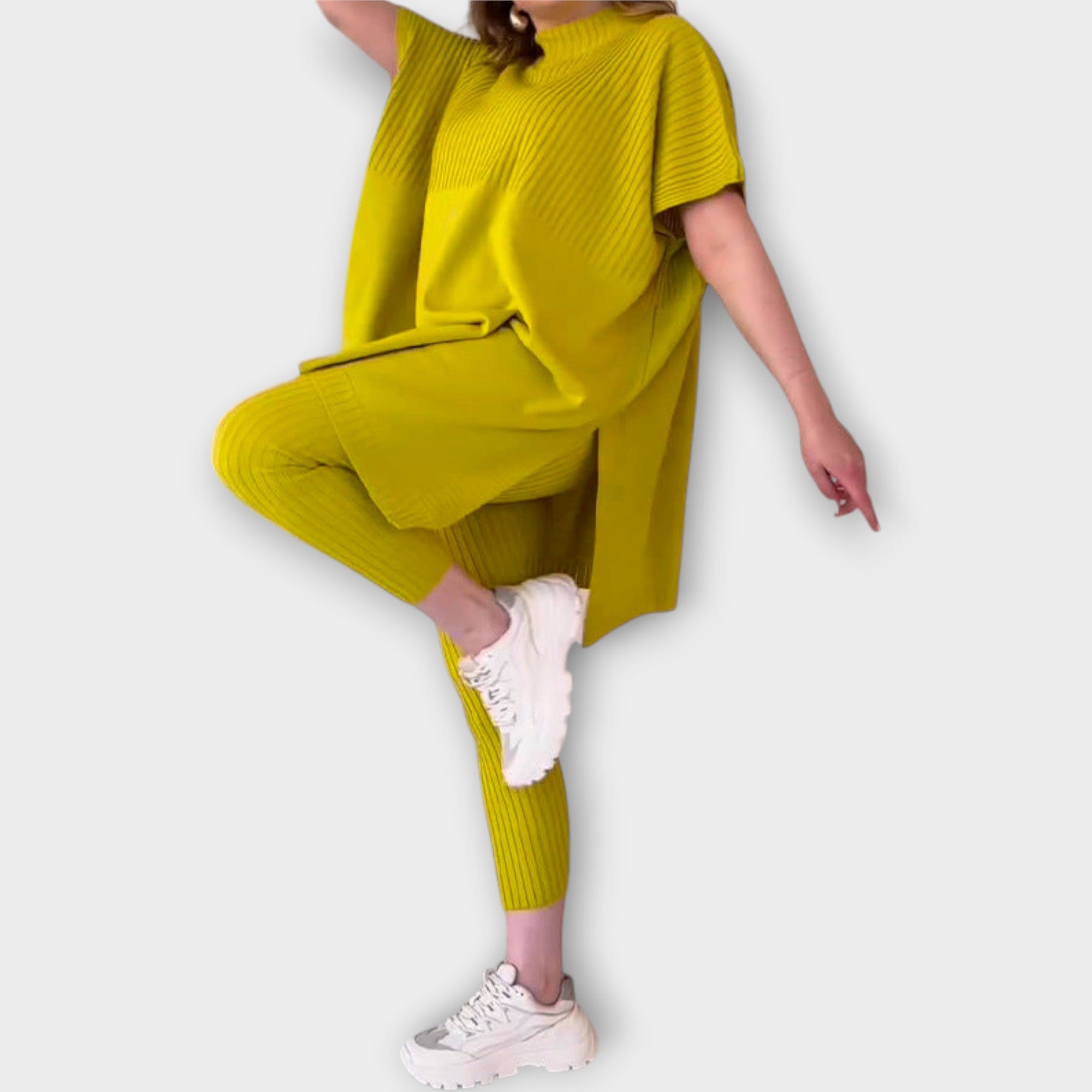 Elegantní pletený set s pohodlným střihem, který spojuje styl a praktičnost pro každou chvíli dne. Jemná, měkká textilie poskytuje pohodlí po celý den, pokud volný střih zajistí svobodu pohybu. Minimalistická estetika a nadčasový charakter dělají z této sady univerzální volby, která se hodí ke každému stylu — od casual po sofistikované outfity.