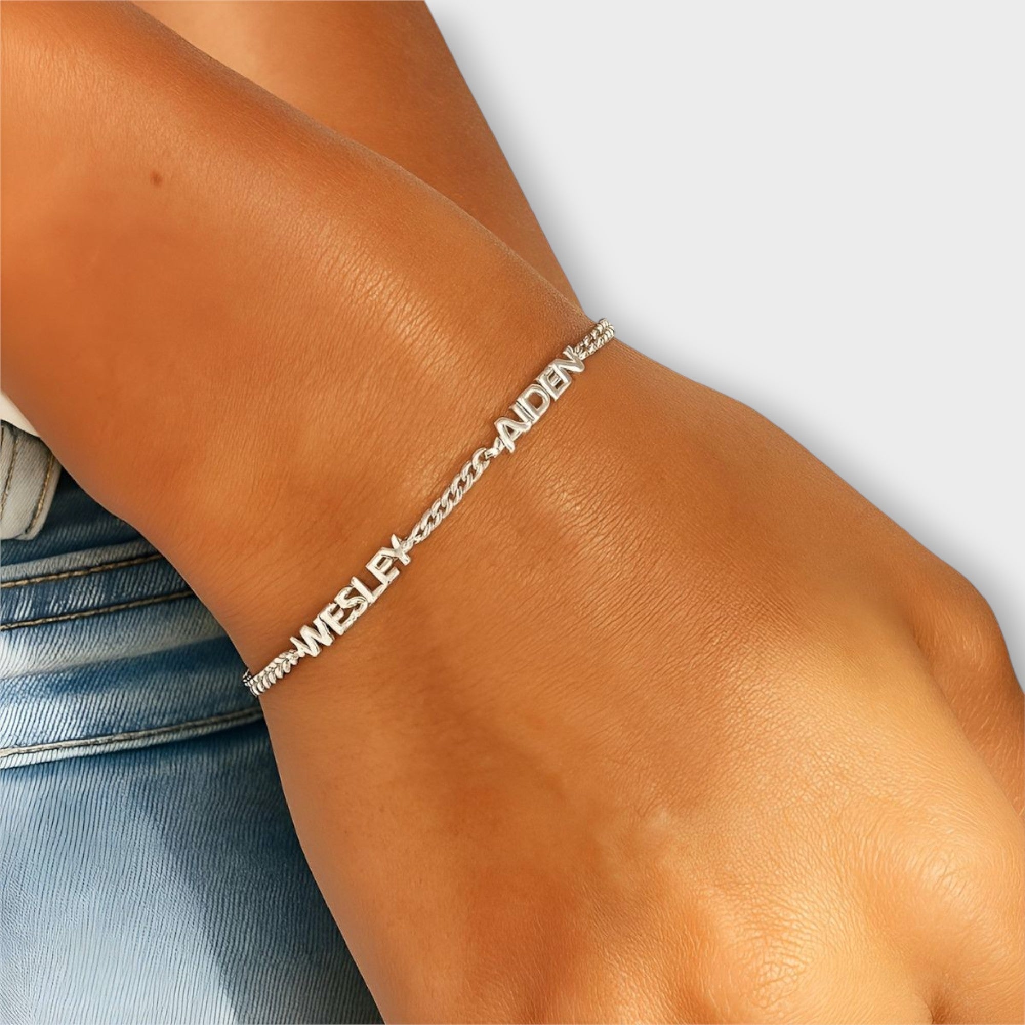 Objevte náramek s personalizovanými jmény — elegantní doplněk, který snadno doladí každý outfit a dodá mu osobní nádech. Jeho design se hodí jak ke každodennímu stylu, tak i ke slavnostnějším příležitostem a díky jemnému provedení nabízí pohodlí po celý den.