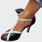 Objevte šarm retro elegance s těmito lodičkami s T-páskem — elegantní modro-růžová kombinace s jemnými zlatými detaily doplní vašemu večernímu vzhledu jiskru a sofistikovanosti.