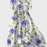 Objevte kouzlo jara s našimi elegantními maxi šaty! Tyto šaty s bílým základem a fialovými květinami vyzařují svěžest a ženskost, ideální pro vaše jarní a letní outfity.