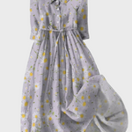 Okouzlující dlouhé šaty v jemné lila barvě jsou perfektní volbou pro váš svěží a jarní vzhled. S decentním designem kopretin v bílé a žluté barvě dodávají lehkost a radost do každého dne.