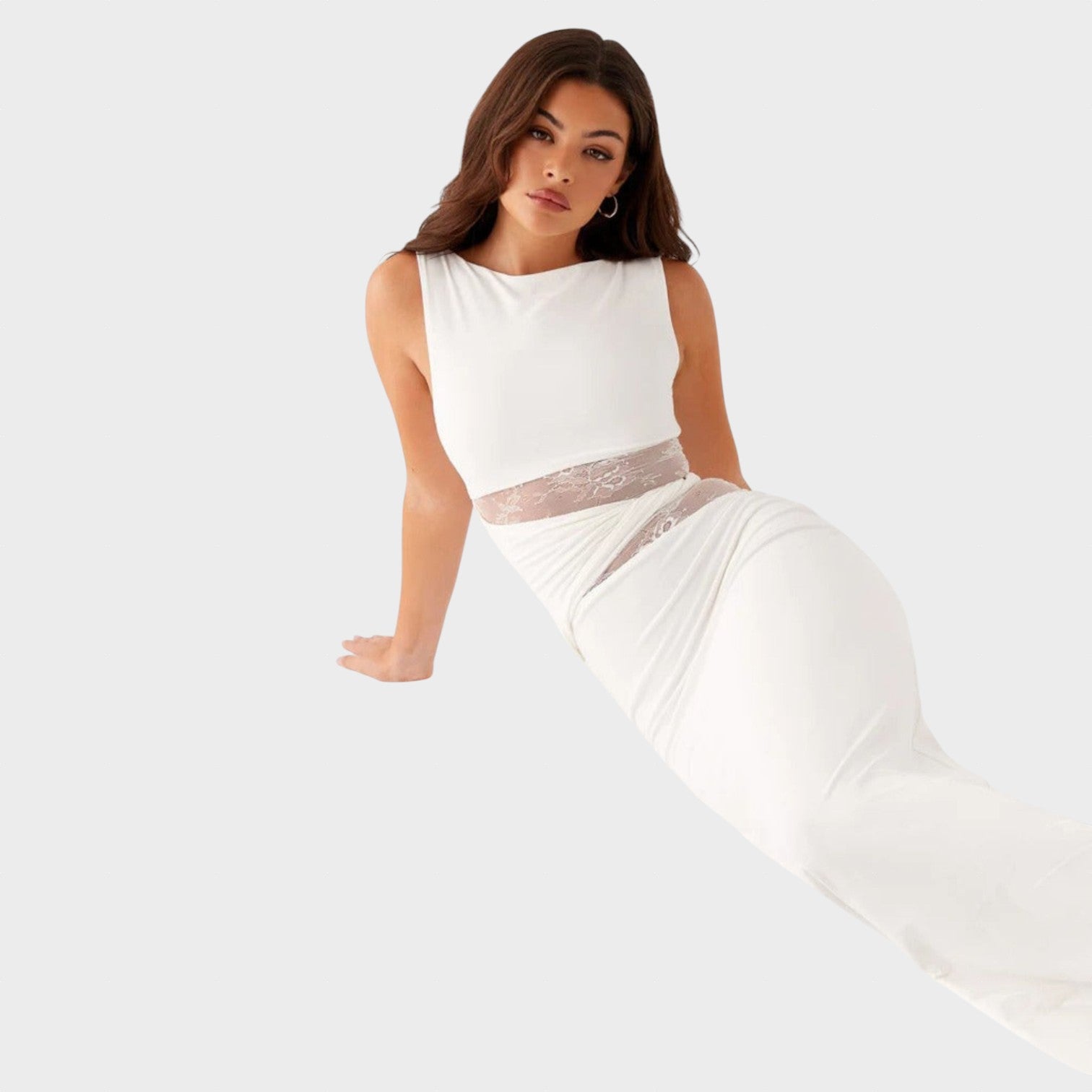 Leni | Maxi šaty zvýrazňující postavu s jemnými průstřihy a šněrováním