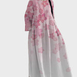 Volný střih zajišťuje pohodlí po celý den, zatímco květinový motiv dodává romantický a elegantní vzhled. Jemná bílá látka s růžovými květy tvoří svěží a ženský dojem, který se hodí na procházky, setkání s přáteli i letní výlety.