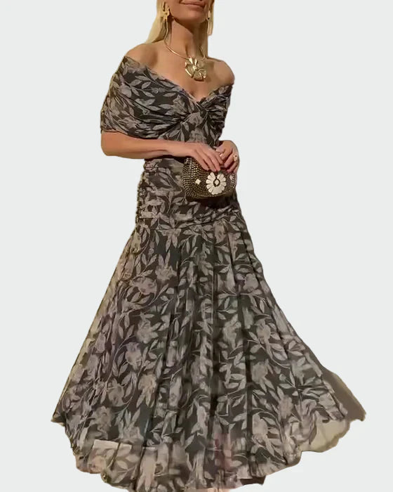 Elegantní šaty s výstřihem do V a odhalenými rameny vyzařují romantiku a jemnost. Květinový vzor a lehká, splývavá látka dodávají šatům vzdušný pohyb, který vytváří elegantní a působivý dojem při každé zvláštní příležitosti.