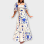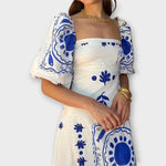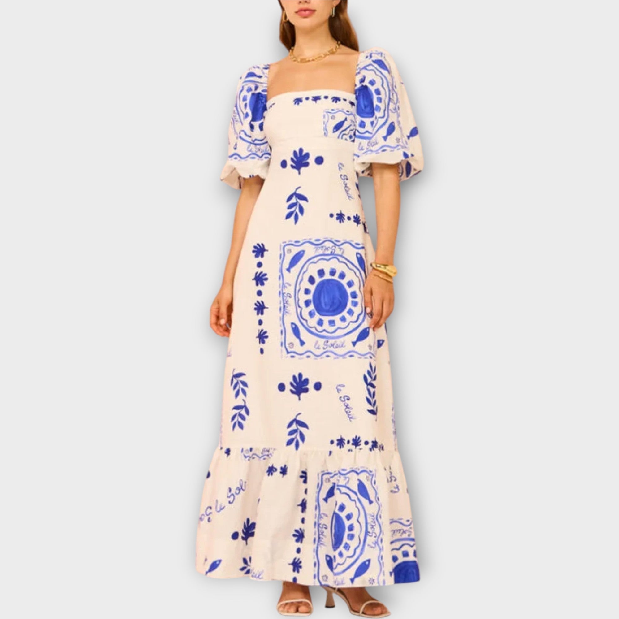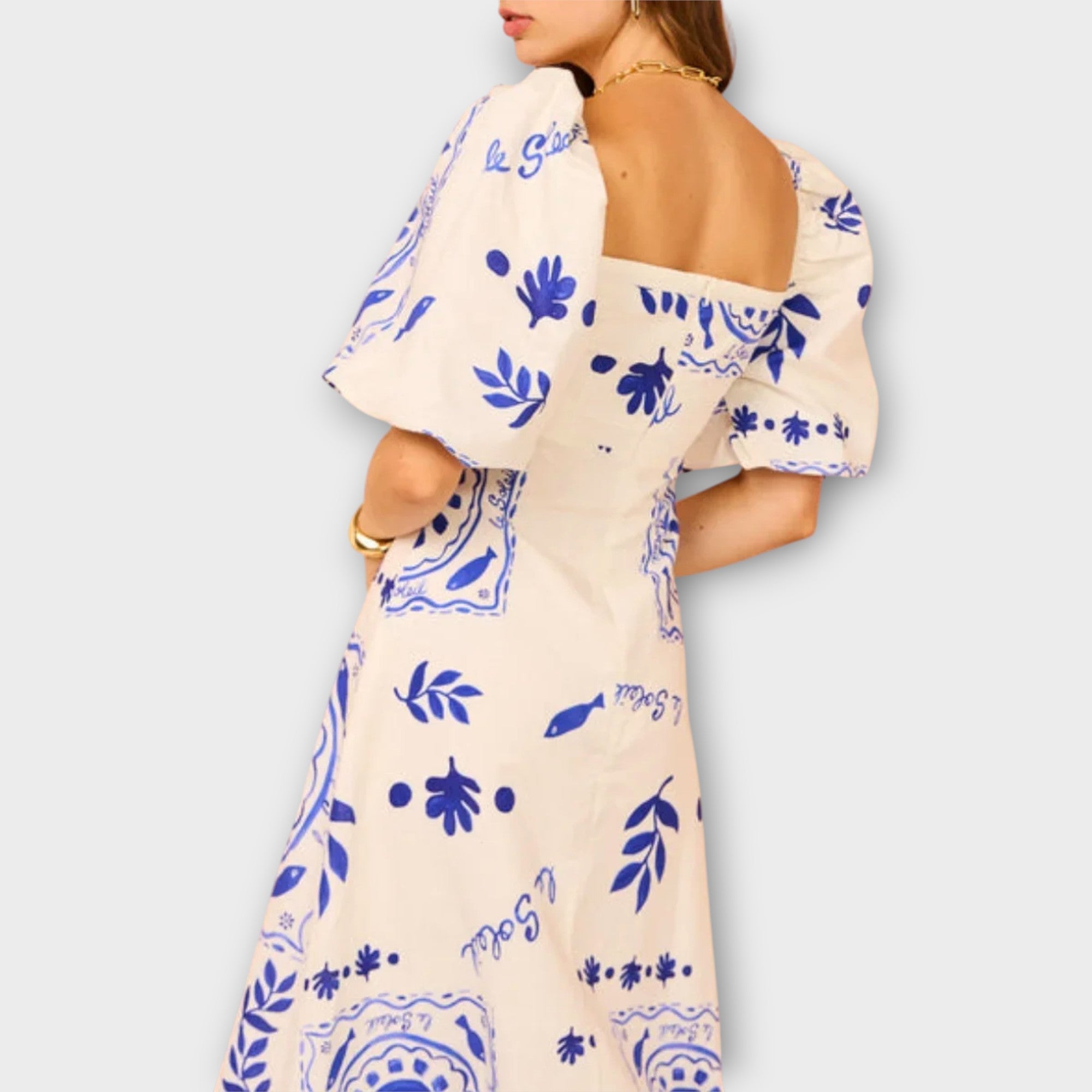 - Čtvercový výstřih a balónové rukávy dodávají šatům šarm a moderní vzhled.