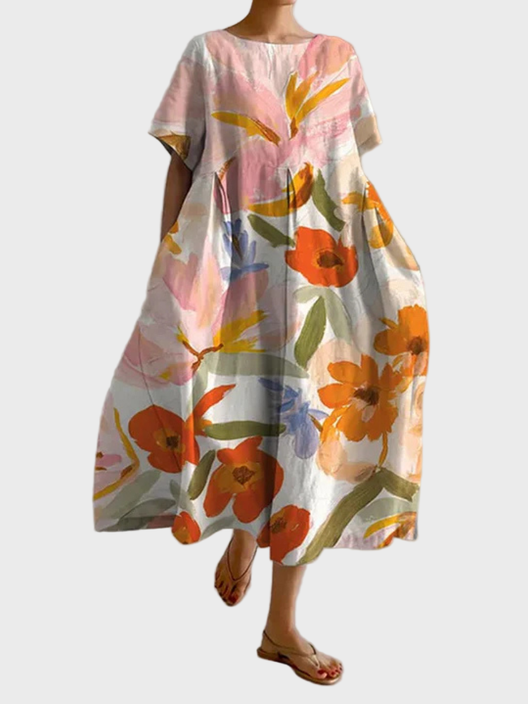 Milost věčnosti – letní šaty s květinovým vzorem, které působí jako umělecké dílo na těle , plné barev a života.