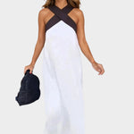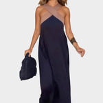 Stylingový tip: doplňte šperky s jemným leskem a vyberte jemný makeup, aby šaty vynikly. Tato kombinace nude a navy je ideální volbou pro večery, večeře a speciální události.
