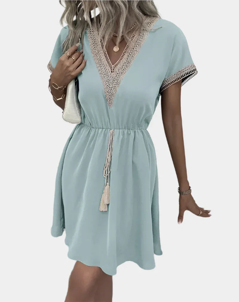 Romantické Boho Šaty S Páskem A Dekolt Do VS Krajkou