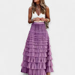 Boho Sukně s Síťovaným Saténovým Lemem